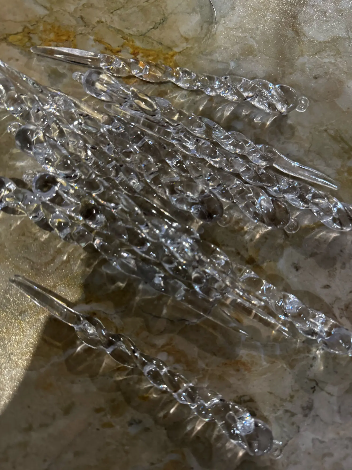 Delicate, transparent icicle decorations that capture the magic of the season. Perfect for Christmas trees, winter parties, and festive interiors that deserve a soft, shimmering glow.
