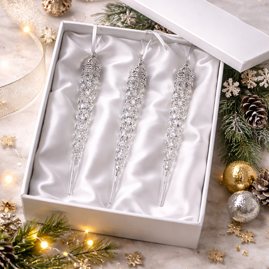 Delicate, transparent icicle decorations that capture the magic of the season. Perfect for Christmas trees, winter parties, and festive interiors that deserve a soft, shimmering glow.